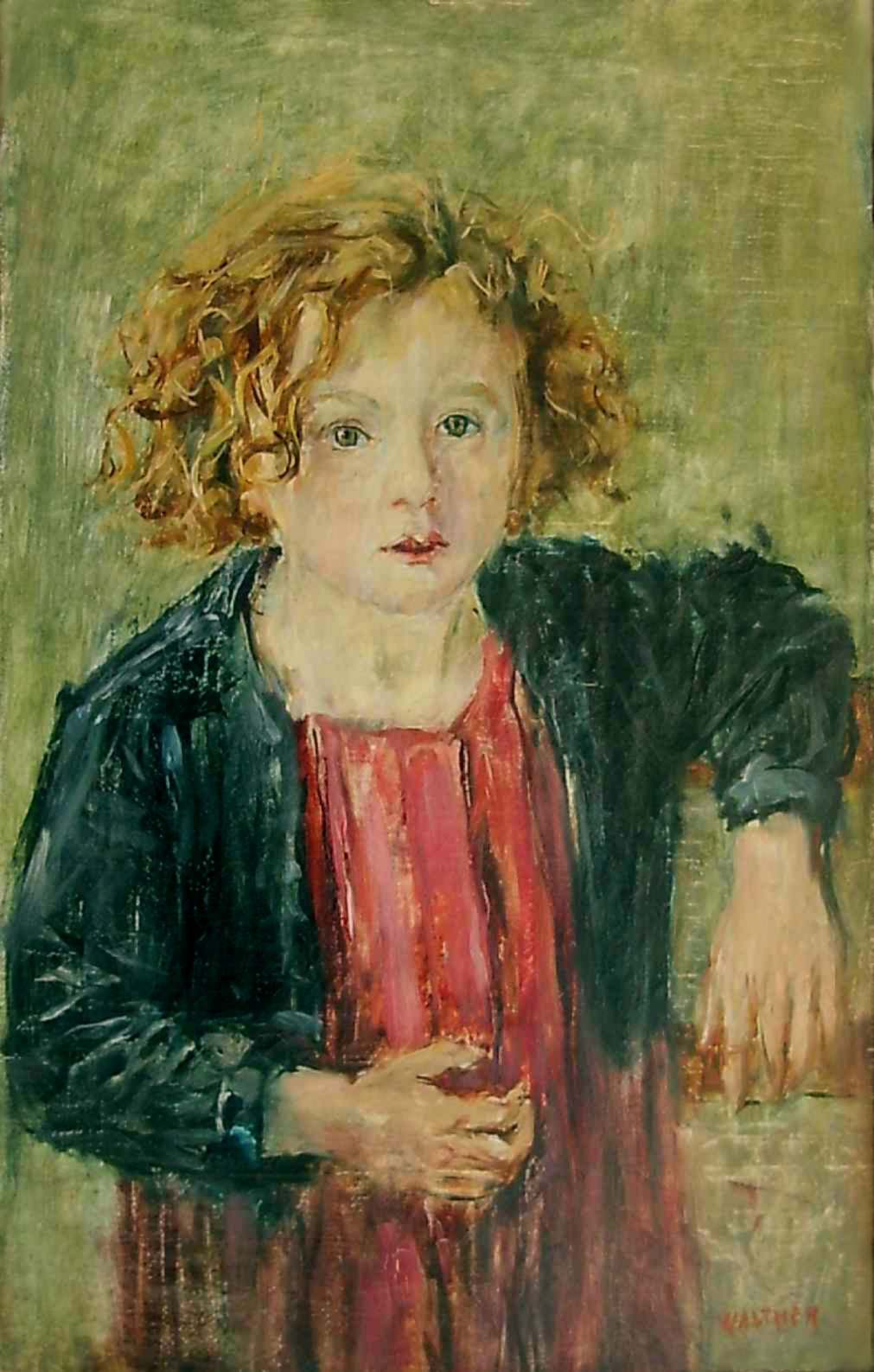 Bild blickt. Die Züge sprechen für einen wachen, hellen Geist, die Haltung für